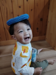 やがて自分でかぶれるようになり、「あたま」と大人が伝えてあげることで体の部位を覚えるきっかけにもなります✌
