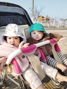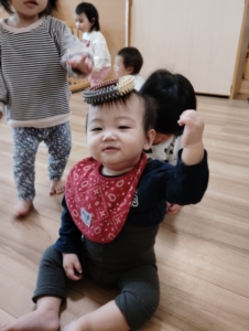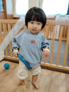 他にも置いてあるペットボトルに通したり、顔を出してみたり、、、子どもたちは遊びを見つけるのがとても上手です🤩