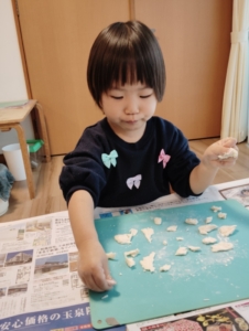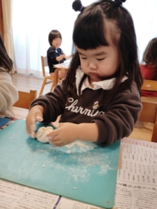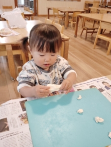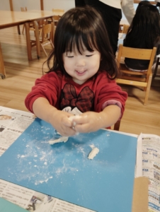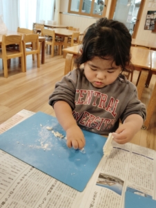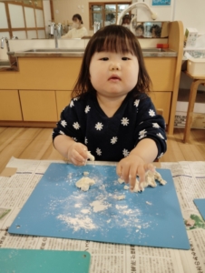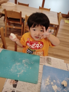 大好きな小麦粉粘土の感触を楽しむ子ども達💕