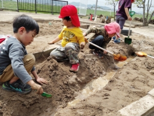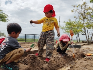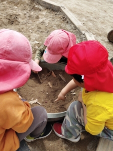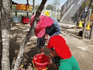 また、園庭では裸足で遊び初めました👣雨上がり後は園庭にできた水たまりを使ってジャングルを作ったり、泥団子を作ったりと自然と触れ合いながら遊ぶ子どもたちです🫶🏻💞