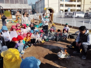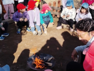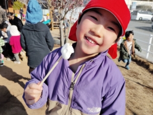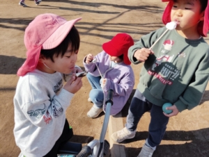 園長先生が園庭でどんどやをしてくれたので見に行くことに👀
