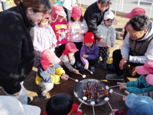 火を眺めたり、マシュマロを焼いて食べたり😋いつもと違う雰囲気にきりんさんもルンルンでしたよ💕