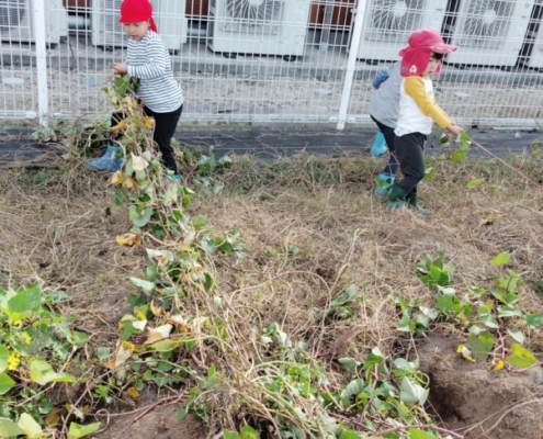 お友だちと力を合わせて引っ張ったり、抜けるとすってんころりんと転んだり🤣一生懸命お芋を探していましたよ👀